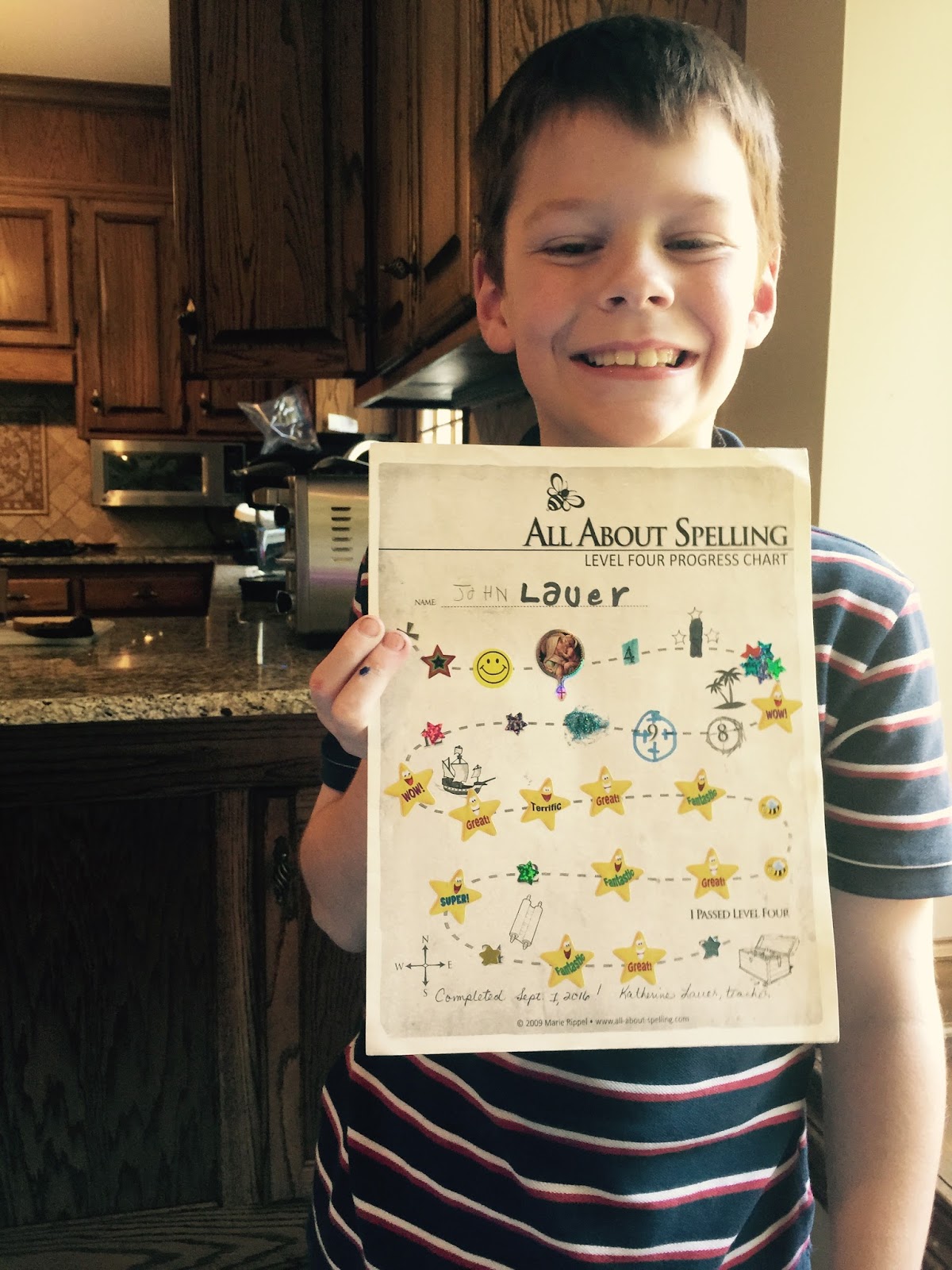 My sweet fourth grader finished his latest spelling book and will start the next level on Monday.