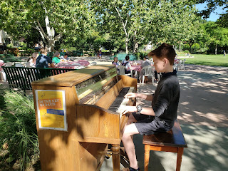 After early morning relaxation together, we met Dad at 8:00 at the famous Davis Farmers' Market, played on wonderful playground, ate pastries for breakfast, and walked the Community Gardens full of beautiful native plants. It was surprisingly brisk with winds at gusts of 30 mph.